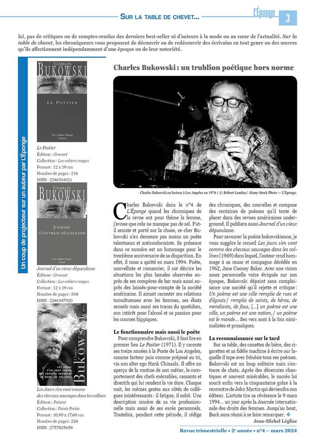 Un coup de projecteur sur un auteur : Charles Bukowski : un trublion poétique hors norme (p.03)