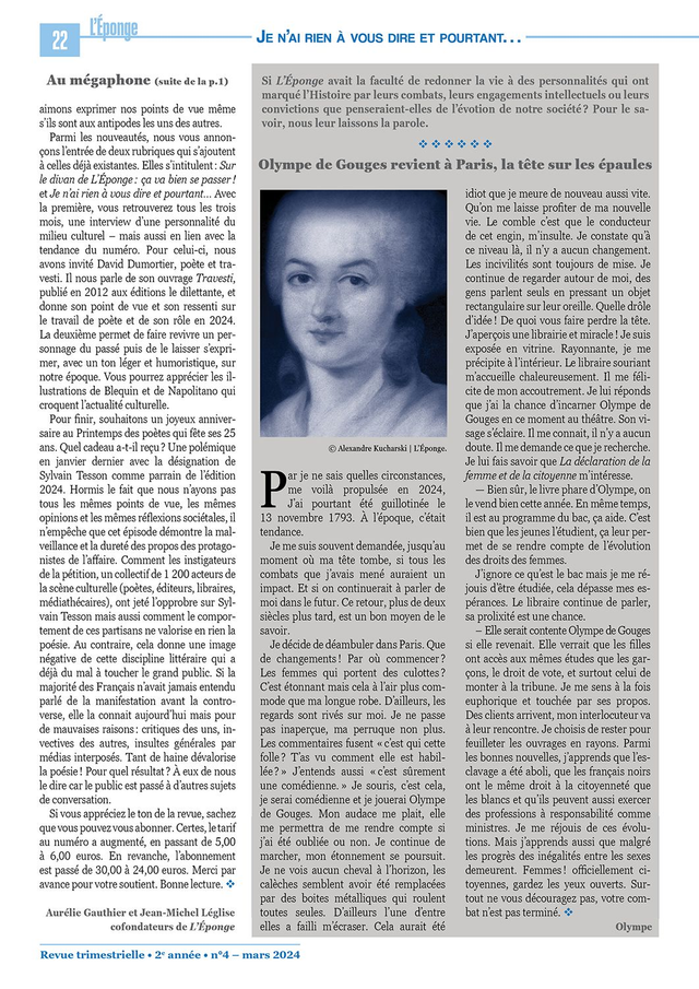 Je n’ai rien à vous dire et pourtant… : Olympe de Gouges revient à Paris, la tête sur les épaules (p.22)
